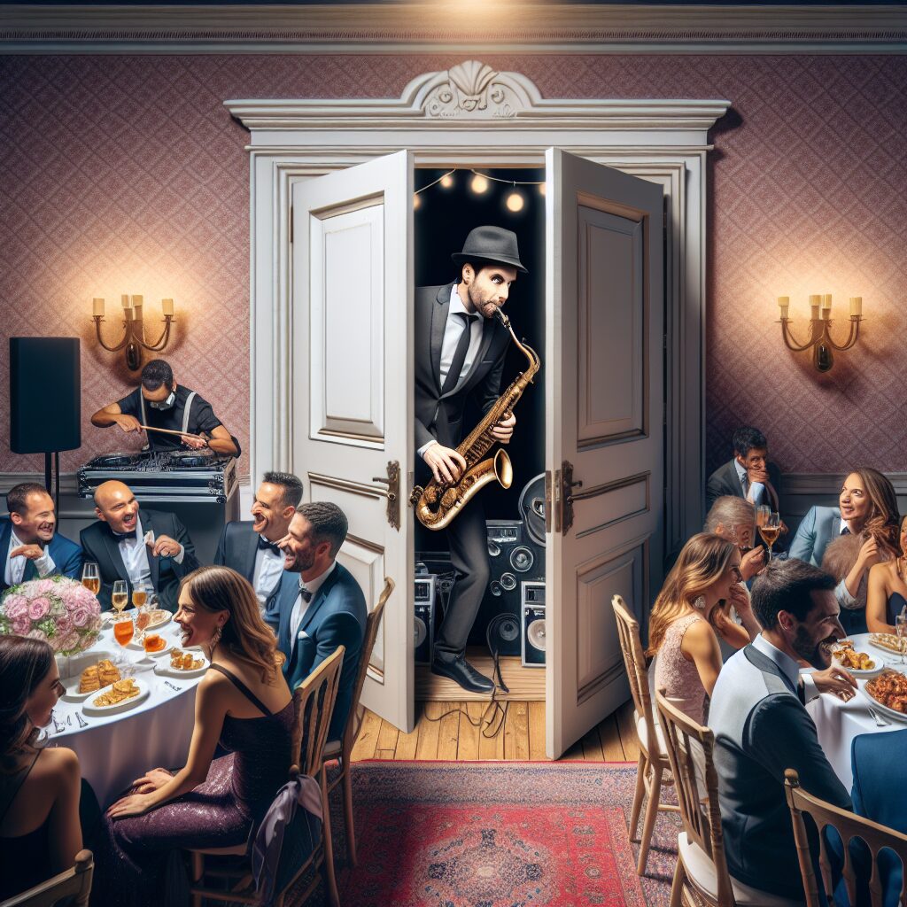 Døren åbnede lydløst bagest i lokalet, og ud trådte saxofonisten. Han satte hornet til læberne og spillede med ét en tone så varm og velplaceret, at hele rummet vendte sig om. Før nogen nåede at spørge “hvem er det?”, havde han allerede spillet sig ind i festen – og hjerterne.